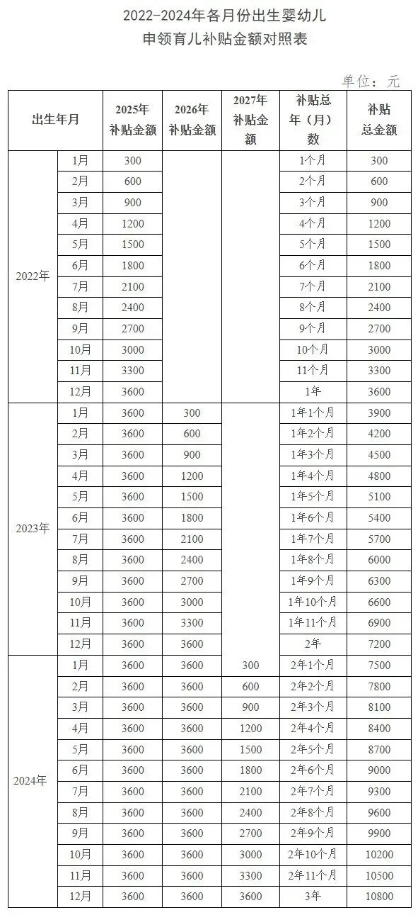 去年7月,国家出台了《育儿补贴制度实施方案》,明确规定为3周岁以下婴幼儿提供每孩每年3600元的补贴,切实减轻家庭育儿负担。