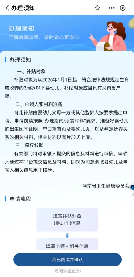 温馨提示:进入【洛阳本地宝】公众号,在聊天框发送【育儿补贴】,即可查看育儿补贴申请指南、申请入口、补贴金额计算器等。