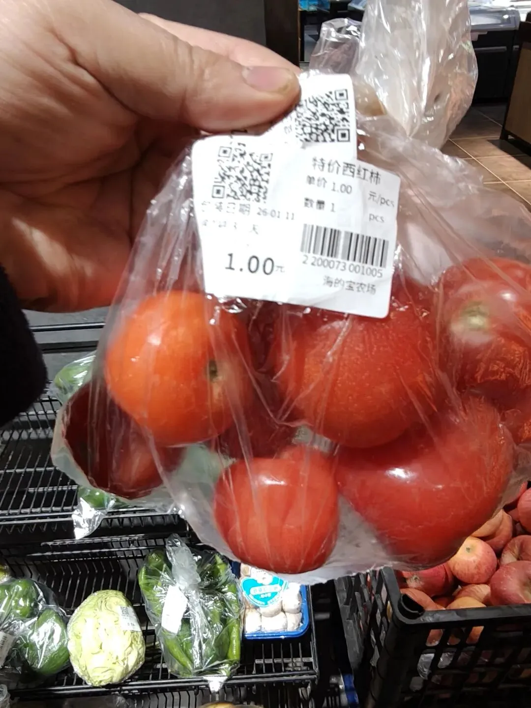今天我在海的宝买到了一元一斤的特价西红柿和五毛一斤的土豆,品质上基本上没有大的瑕疵。