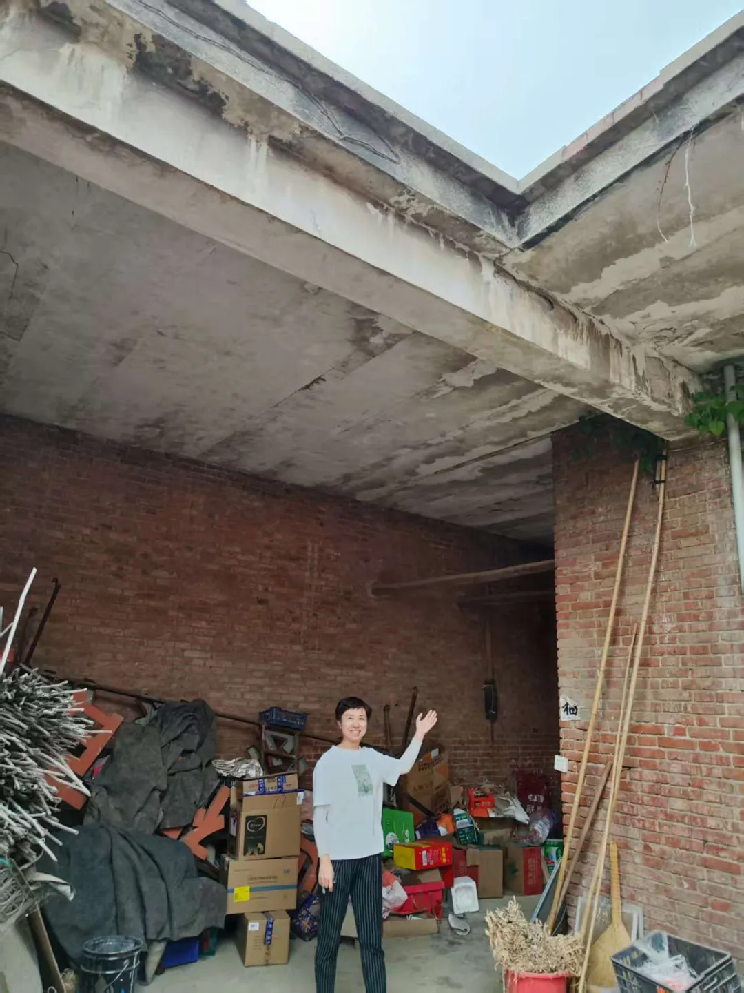 舅舅家的门楼还是在村里人的帮助下才认出来。门上挂了一把锁,我们开门进去,原来的三进深的院落成了一进深,就剩下门口的那个房子,屋子里堆满了破烂,院子里种着菜。旭旭站在门口的房梁下回忆起小时曾在这房梁下面荡过秋千。看到人去楼空的破败,更加理解了佛家的空,当年精心建设的家,你为之而努力的人生终点都是逝去,这种虚无就是《兰亭序》的:“况修短随化,终期于尽,古人云:“死生亦大矣”。岂不痛哉”。