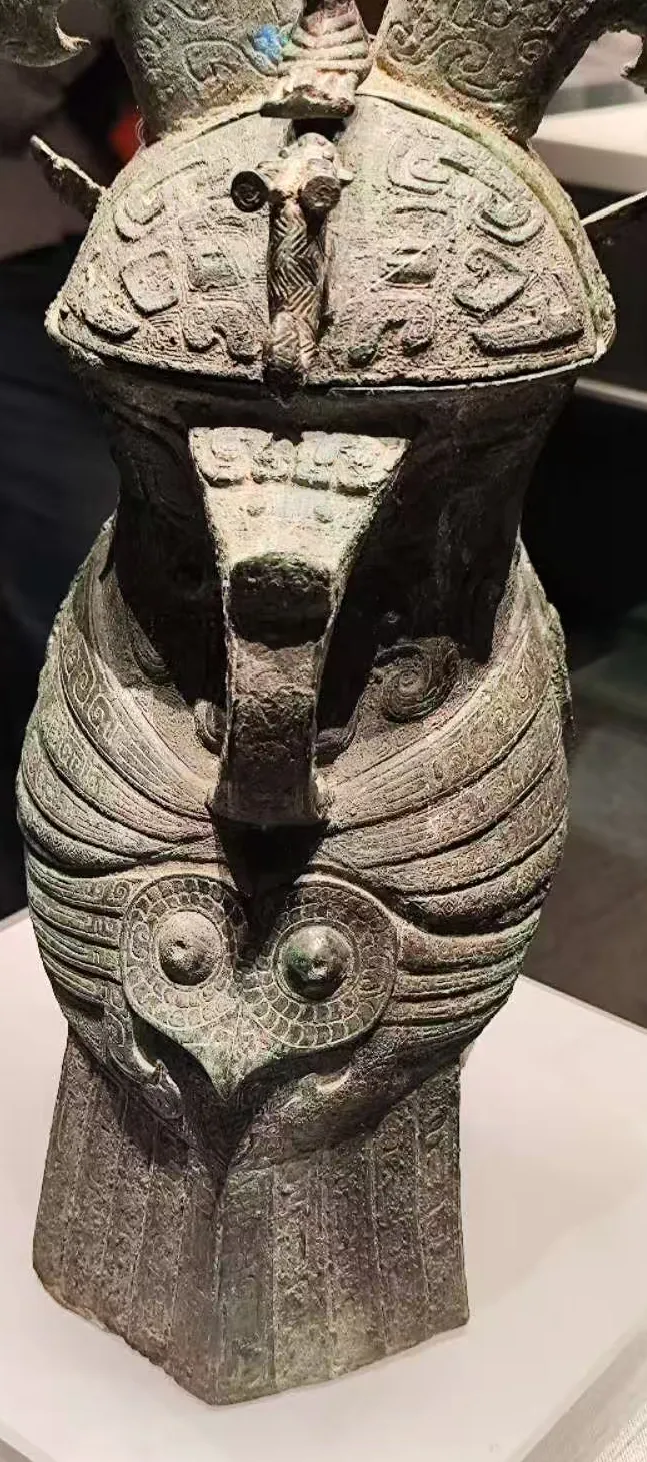 妇好鸮尊的确太美了。前面看猫头鹰眼睛凸起,两边展翅的羽翼,这样威武的猫头鹰能与之相配的只有妇好了。