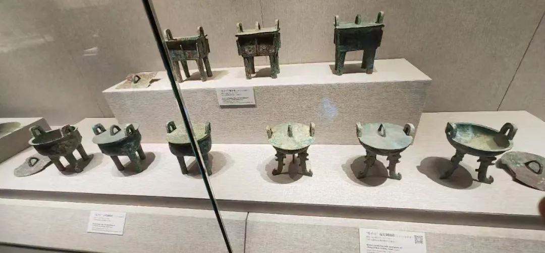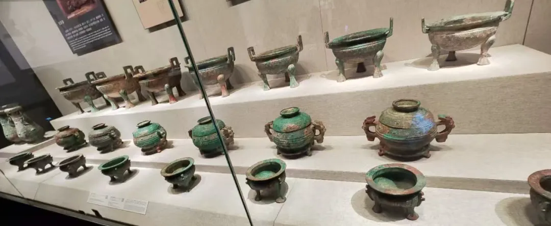 河南这里大都是诸侯封国,其中长子口大墓就是宋开国国君微子启的墓地,出土的青铜鼎有方鼎、带盖圆鼎,也有四耳的簋。还有骨排箫。不同造型的觚,兽首的觥,总之都是酒器。