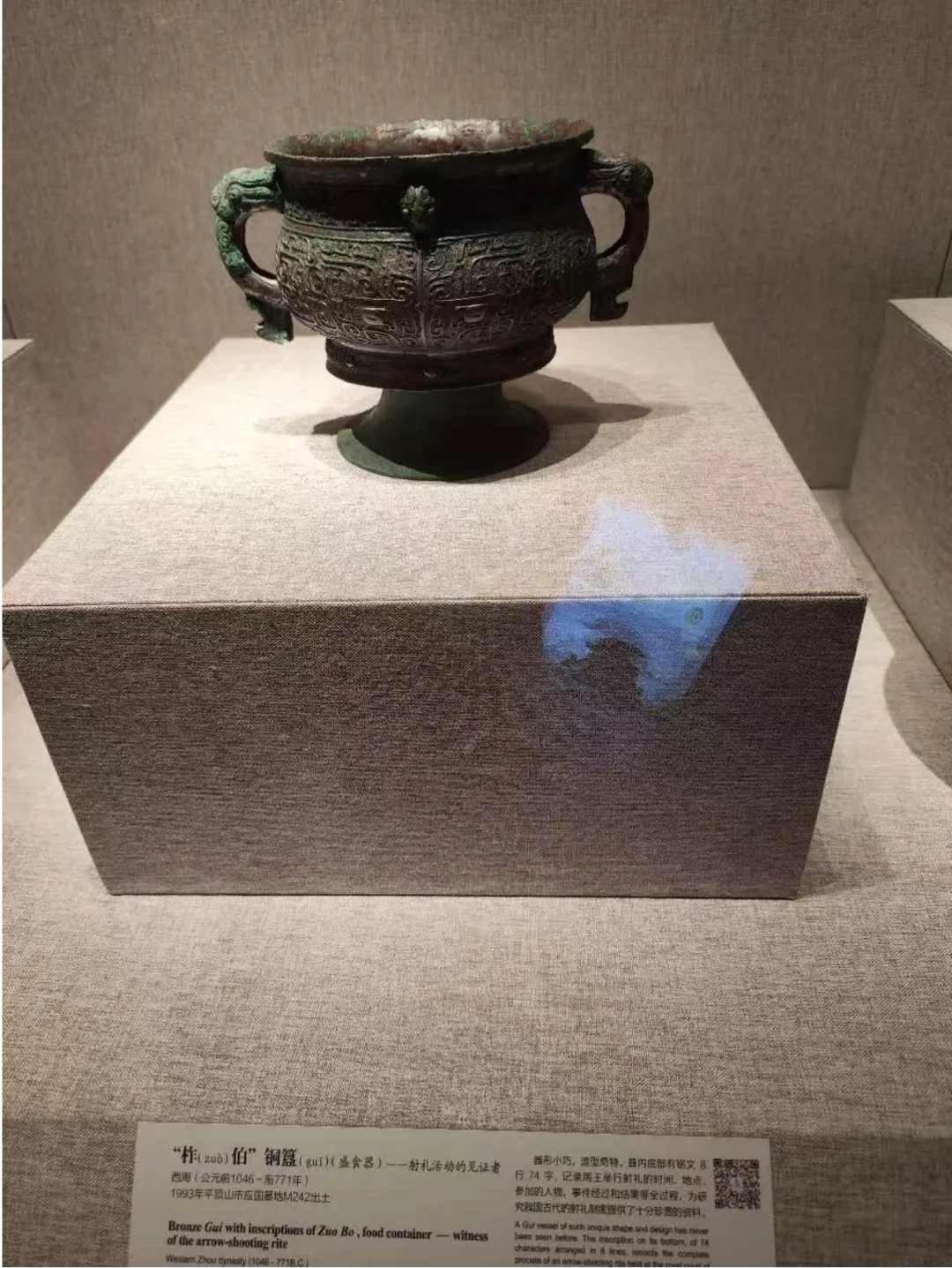 应国墓地的文物。名伯的墓地出土的簋上的铭文记录了射礼的过程。