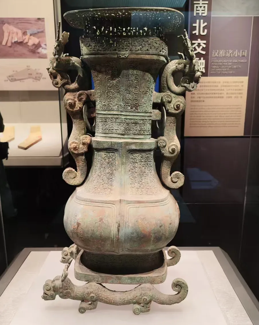 河南省博物馆有个楚国青铜器的专题展,那是因为楚国最早的都城在南阳淅川,这里出土了壶、鼎、缶的造型具有异域风情,非常匹配带有浪漫色彩的楚文化。