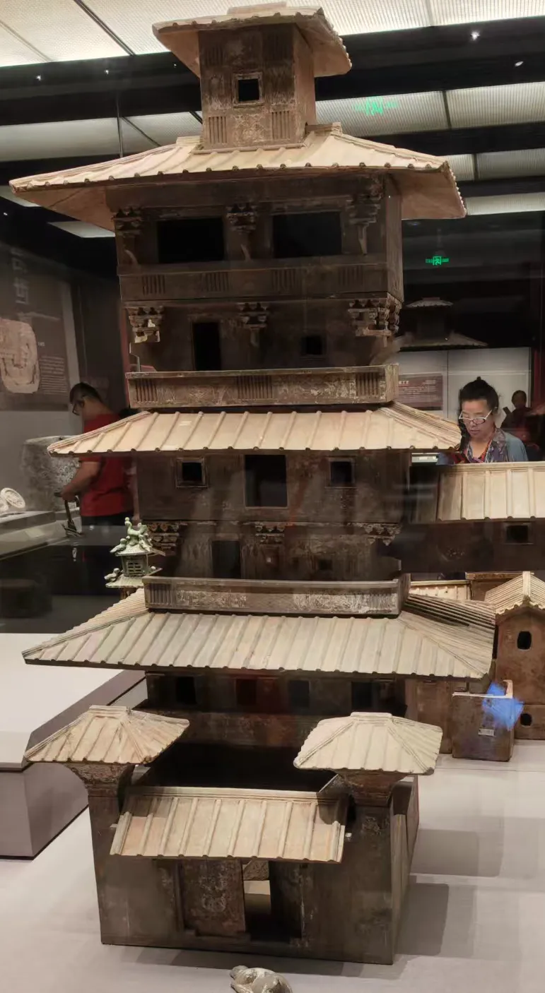 汉代的墓葬我们在徐州实地看过,汉阳陵也看过。汉代墓葬陪葬品很丰富,陶楼、陶仓、陶俑等生活场景的展示,还有就是金缕玉衣等这些都是汉代标配。