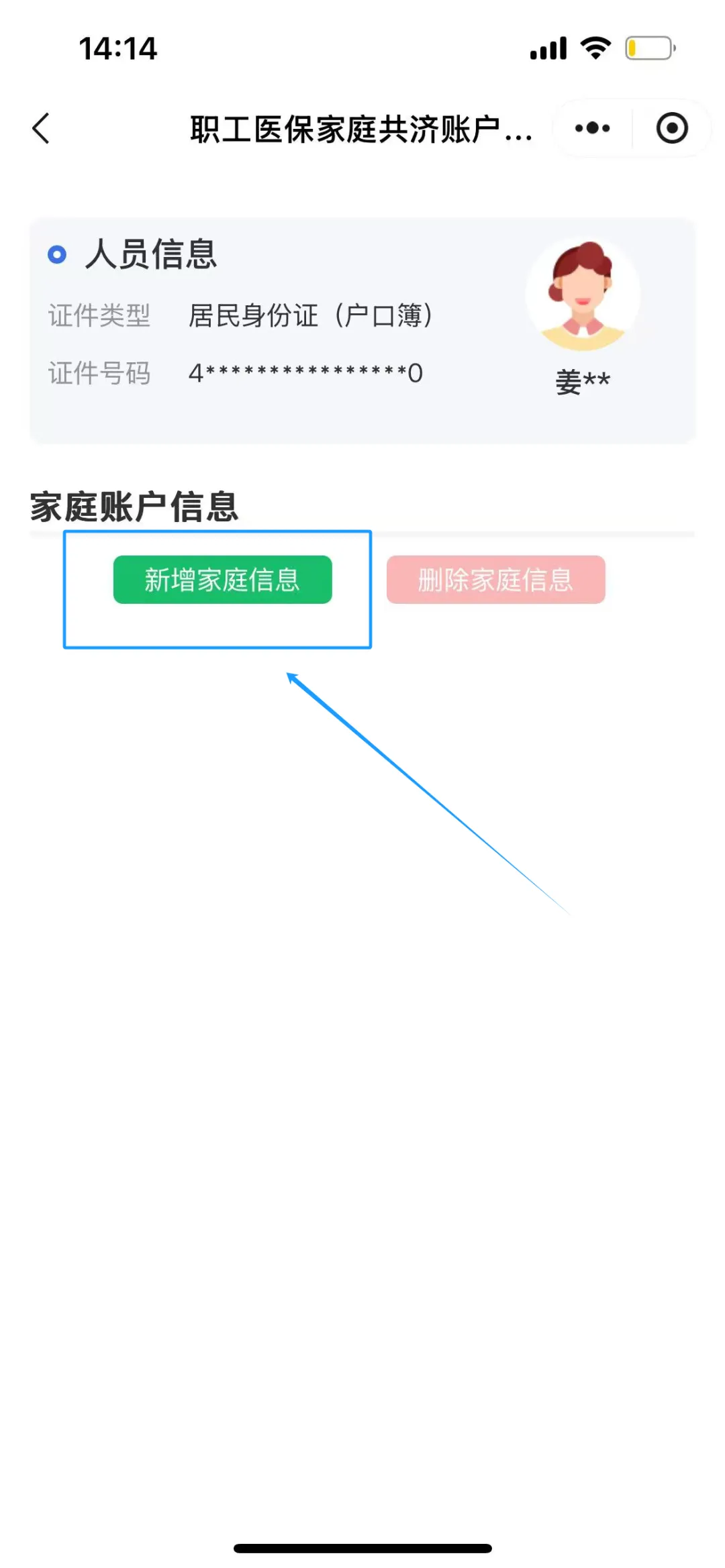 3️⃣点击“职工医保家庭共济账户绑定”进入新增家庭信息界面;