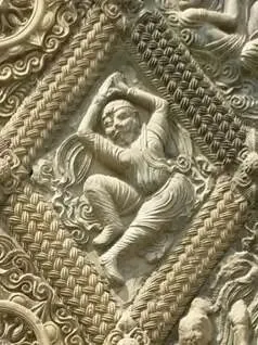 大家可能已经注意到了,大留圣窟内三尊汉白玉雕刻的坐佛都戴着尖尖帽。还有大住圣窟东侧石壁上的单体立姿佛像(见下图)薄衣贴身、肌肤隐现,显得特别奇特。这是为什么呢?北齐上层深染胡俗,以鲜卑族自居,在佛教造像方面,一反北魏以来褒衣博带式服饰,接受多种形式的薄衣叠褶的印度样式。佛像头戴尖尖帽;佛衣贴身、肌肤隐现,正是北齐时代仿照胡人习俗雕造出来的独特形式。推想三尊汉白玉坐佛,起初可能安置在大雄宝殿内,隋唐时由于不适合汉人的审美情趣,被移置到大留圣窟内。北齐仅存在28年,却留下独特的佛教造像样式。【曹(曹仲达)衣出水,吴(唐代吴道子)带当风】