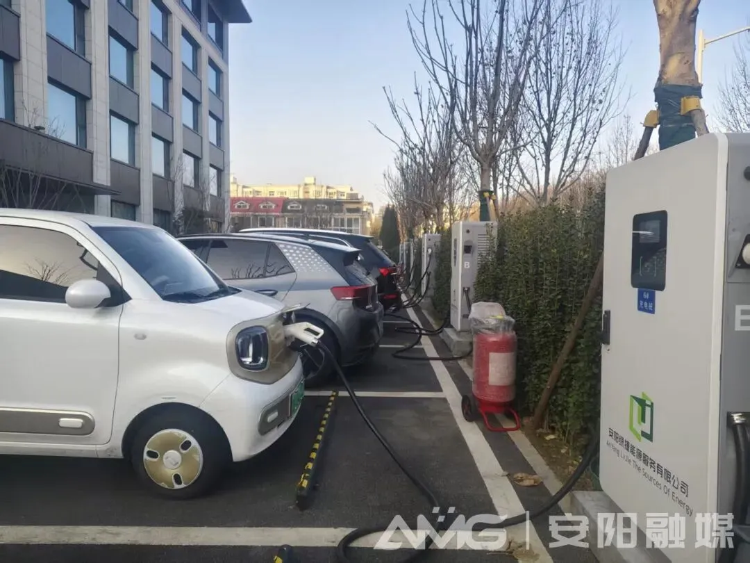 1月8日,在安阳市兴业路与文峰大道交叉口西北角,丛丛绿植掩映间,一排新建的充电桩整齐排列。驾驶人只需取下充电枪、插枪、扫码,不到半分钟,车辆就进入充电状态。