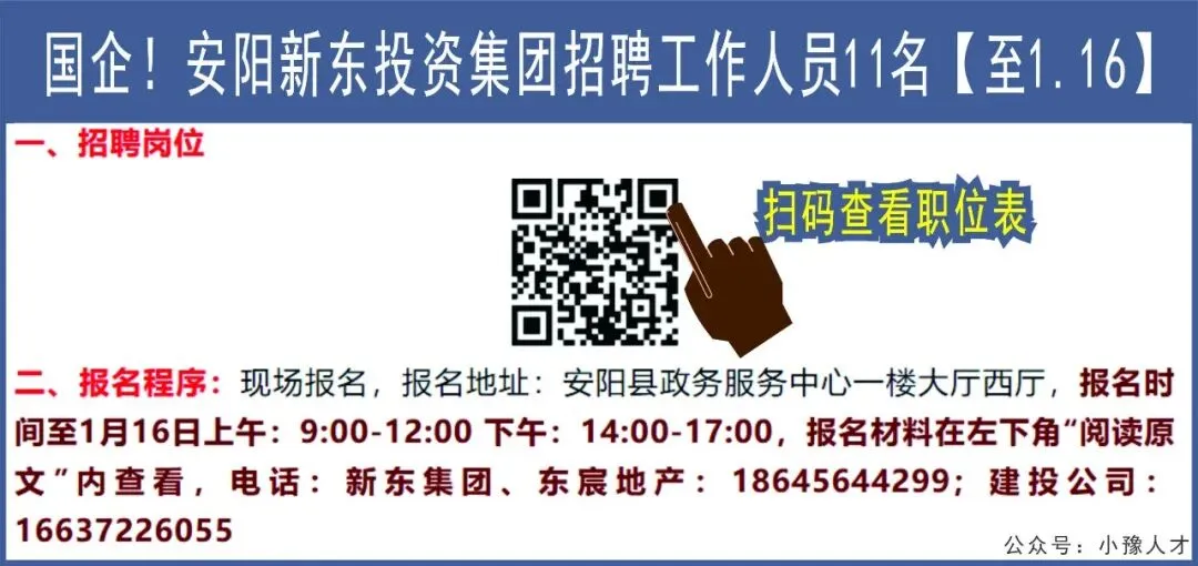 >国企!安阳新东投资集团招聘工作人员11名【至1.16】