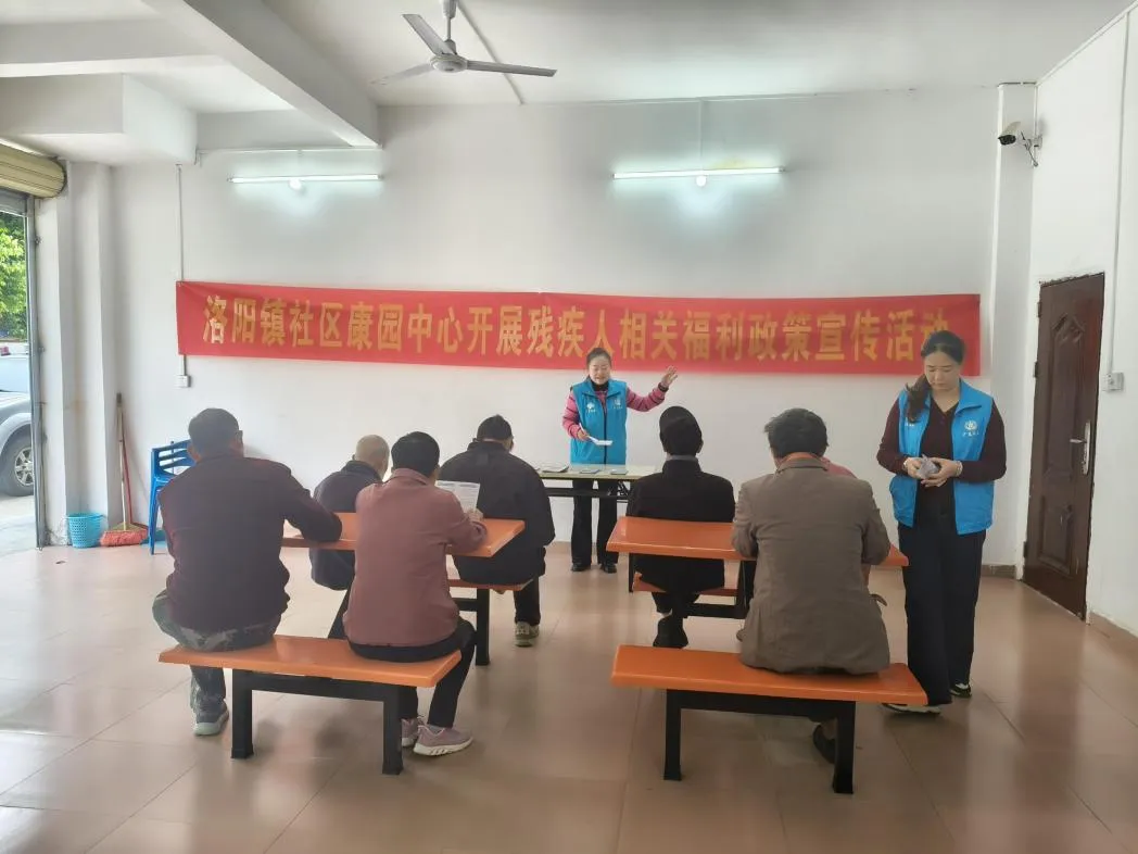 3、2025年11月11日,洛阳镇社工在社区康园中心组织开展了残疾人相关福利政策宣传活动。活动邀请了7位残疾人齐聚,社工现场详细介绍残疾人两项补贴、农村医保等福利政策,以及日常活动、就业帮扶等服务信息,鼓励享受政策的残疾人分享体验,营造活跃氛围。答疑环节,社工逐一解答残疾人提出的疑问,并发放政策宣传册。活动尾声,志愿者与康园会员合影留念,确保全员安全离场。此次活动提升了政策知晓度,为残疾人搭建了便捷的政策了解渠道。