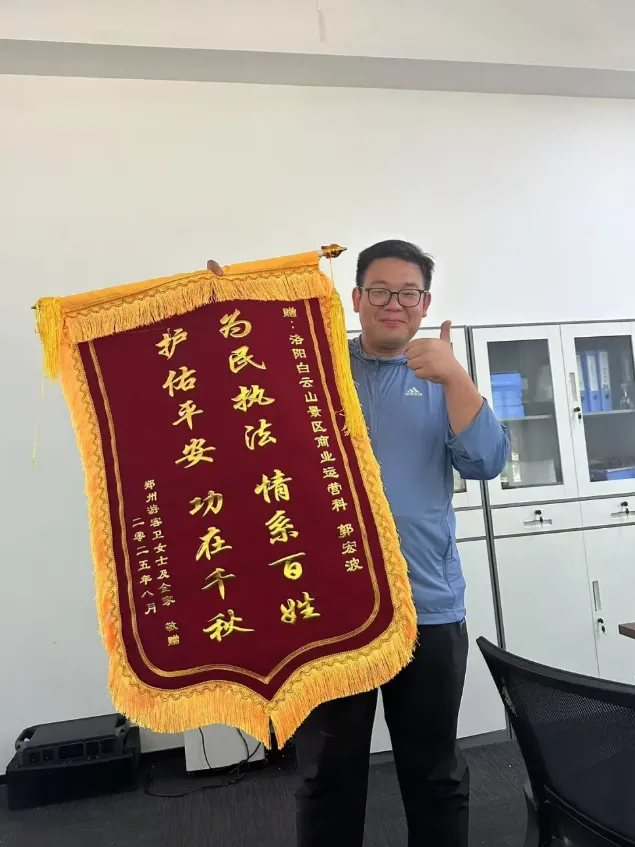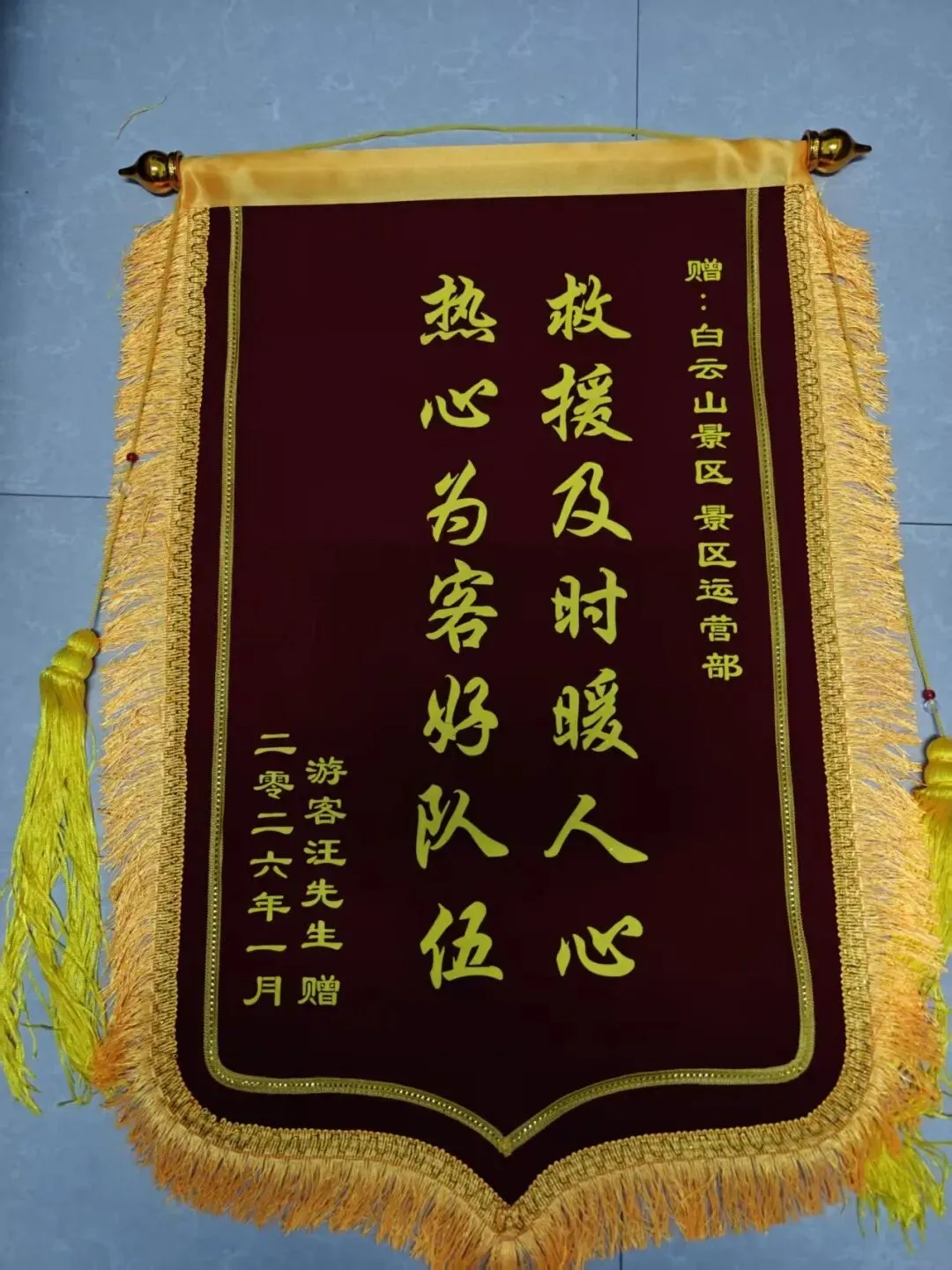 与此同时,车辆运营部宋建圆师傅也收获了一份特殊的认可——来自河北石家庄的陈部雷、王聪聪等游客,专程为他送来锦旗以表感激。