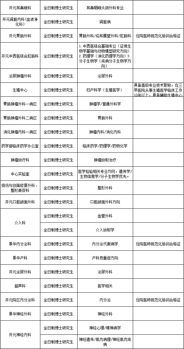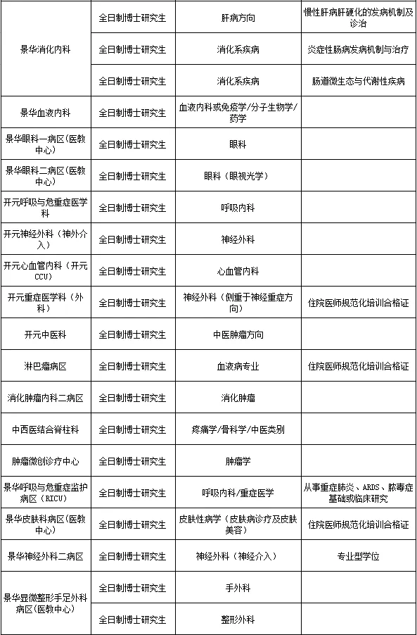 临床医学类专业,年龄不超过35岁,特别优秀者年龄可适当放宽,具有执业医师资格证,有规培证或中级以上职称者优先,博士后已出站者年龄可放宽至40岁(1986年1月1日以后出生)。