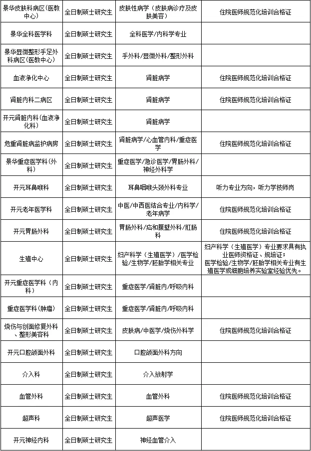 各专业具体要求详见附件,最终解释权归医院人力资源部所有。