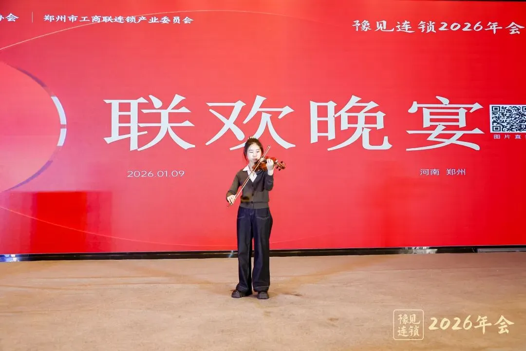 联欢晚宴节目精彩纷呈,小提琴独奏、歌曲、变脸、魔术等吸引大家关注,现场不时爆发热烈掌声,节日氛围融洽。本次年会弘扬社会主旋律,传播正能量,展现河南连锁人自信阳光的精神风貌。 现场抽奖活动把晚会推向高潮,鲜啤福鹿家、臧营桥烧鸡、程氏苗堂、牛得道毛肚、百年白记、小李补胎、捏先生、融鑫企服、郑州中兴产业园、少康龍等品牌提供奖品支持,向他们表示感谢。特别感谢漆匠对豫见连锁2026年会暨联欢晚会的全面支持。