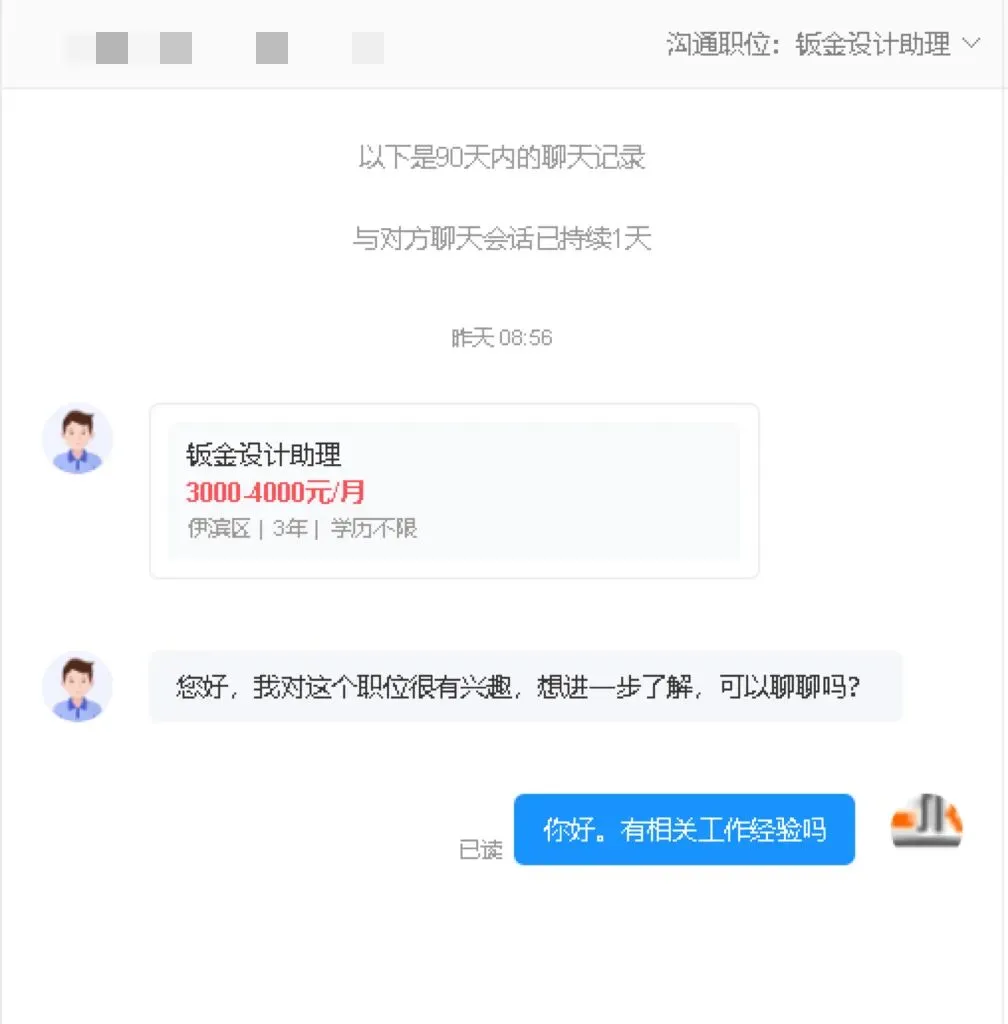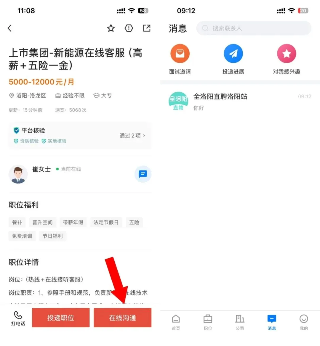 打开岗位点击“在线聊”
