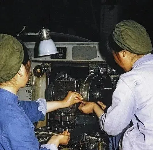 这两位穿蓝工装的女工,盯着机床的尺度反复量,灯头照得亮亮的,手指头夹着小零件一上一下,奶奶笑过,说她们那会儿比男同志更细心,量一遍不放心再量一遍,衣服打着补丁不在意,把活儿干好才是脸上最值钱的底色。