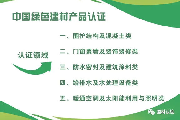 国材认检可提供如下绿色建材产品分级认证目录(第一批)中第一大类到第五大类的中国绿色建材产品认证服务:
