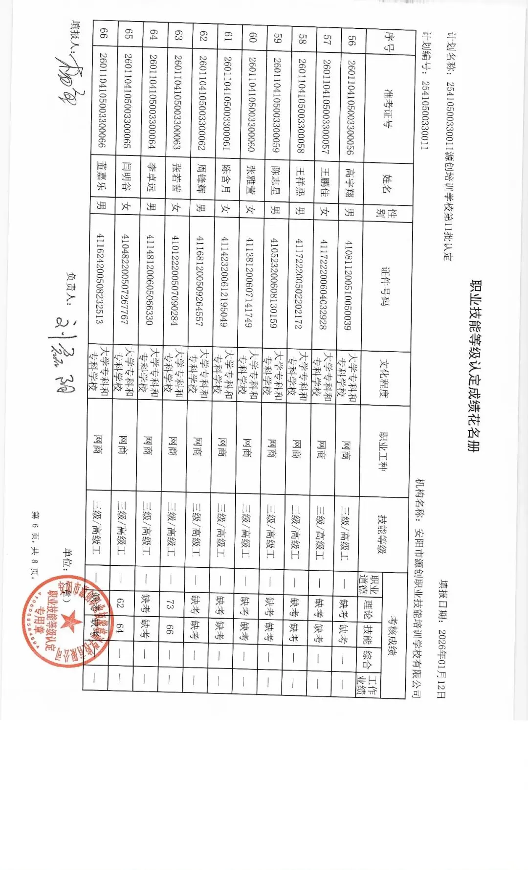 >安阳市源创职业培训学校2025年第11批职业技能等级认定成绩公示