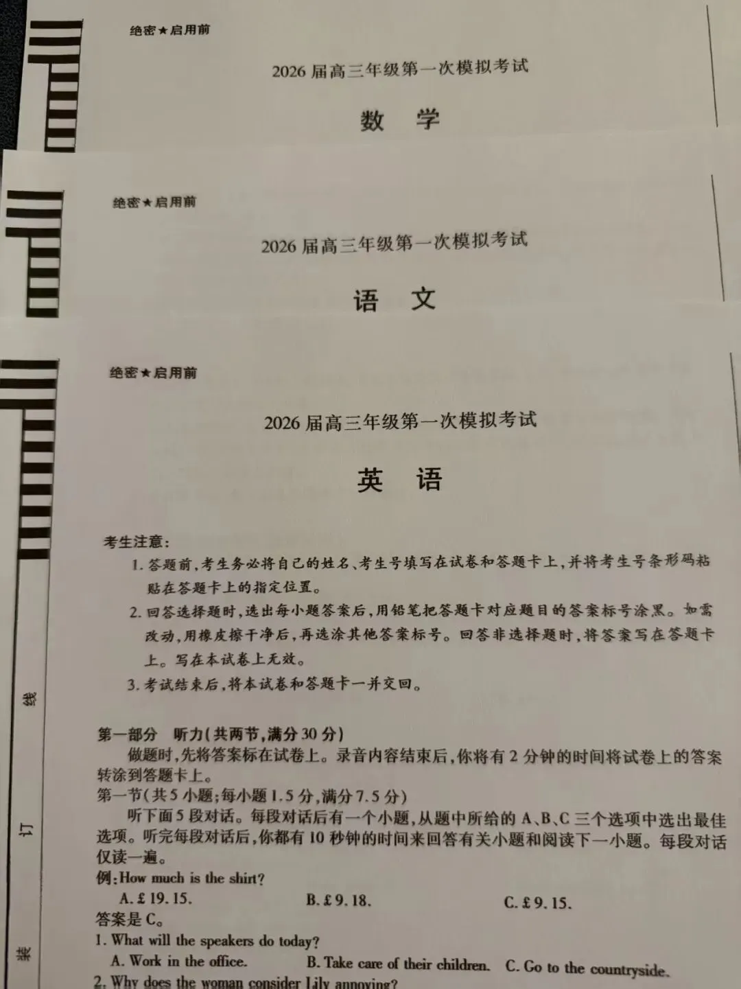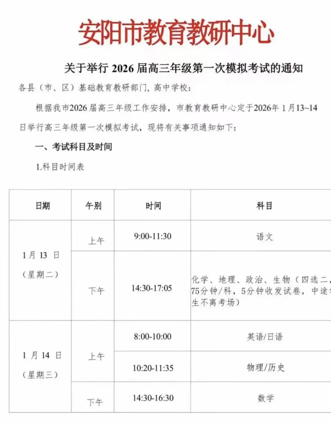 ②联考时间:2026年1月13-14号