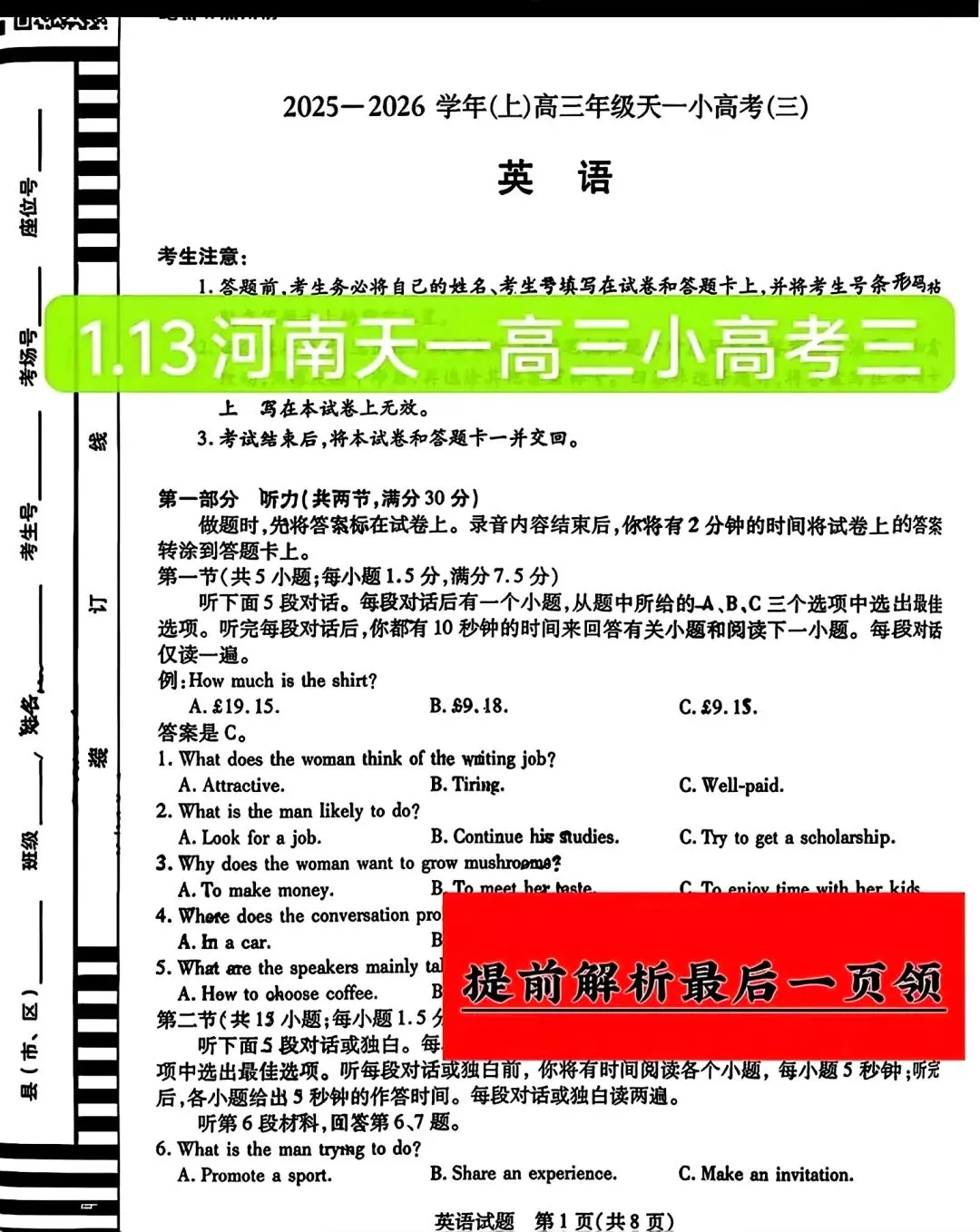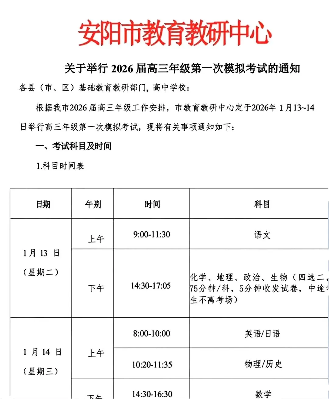 最新考试+试卷!1月13日安阳一模暨2026届高三第一次模拟