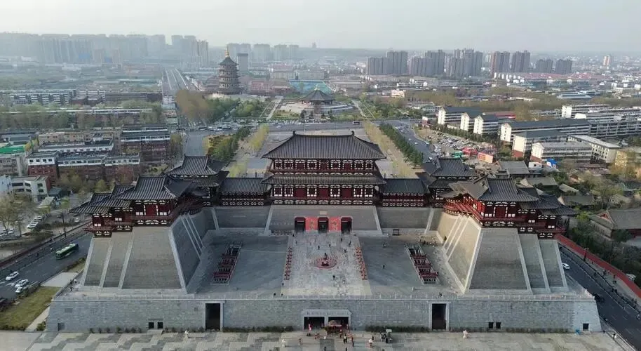 想拍唐风照更像样,早点到定鼎门广场,人少,地砖整,纵深一拉就有史书味。