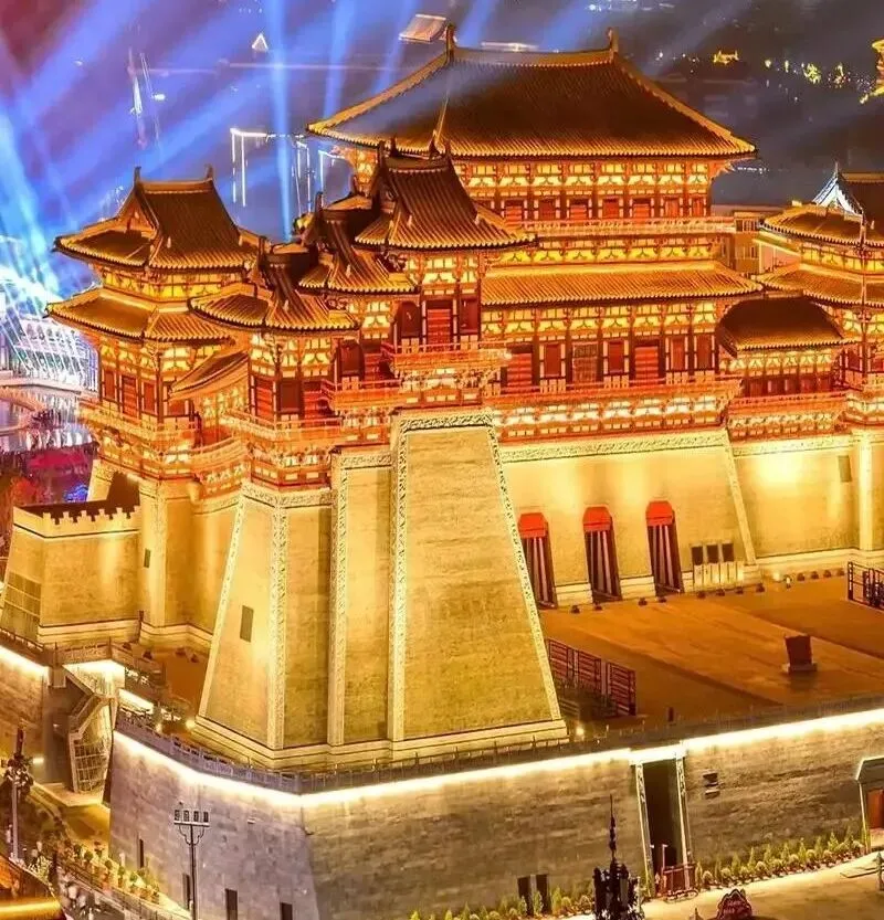 应天门灯一亮,城门高,鼓点起,像把一页史书立在眼前,明堂屋顶层层往上,九洲池水面一平,灯影绕着回廊走,脚步都快不起来。