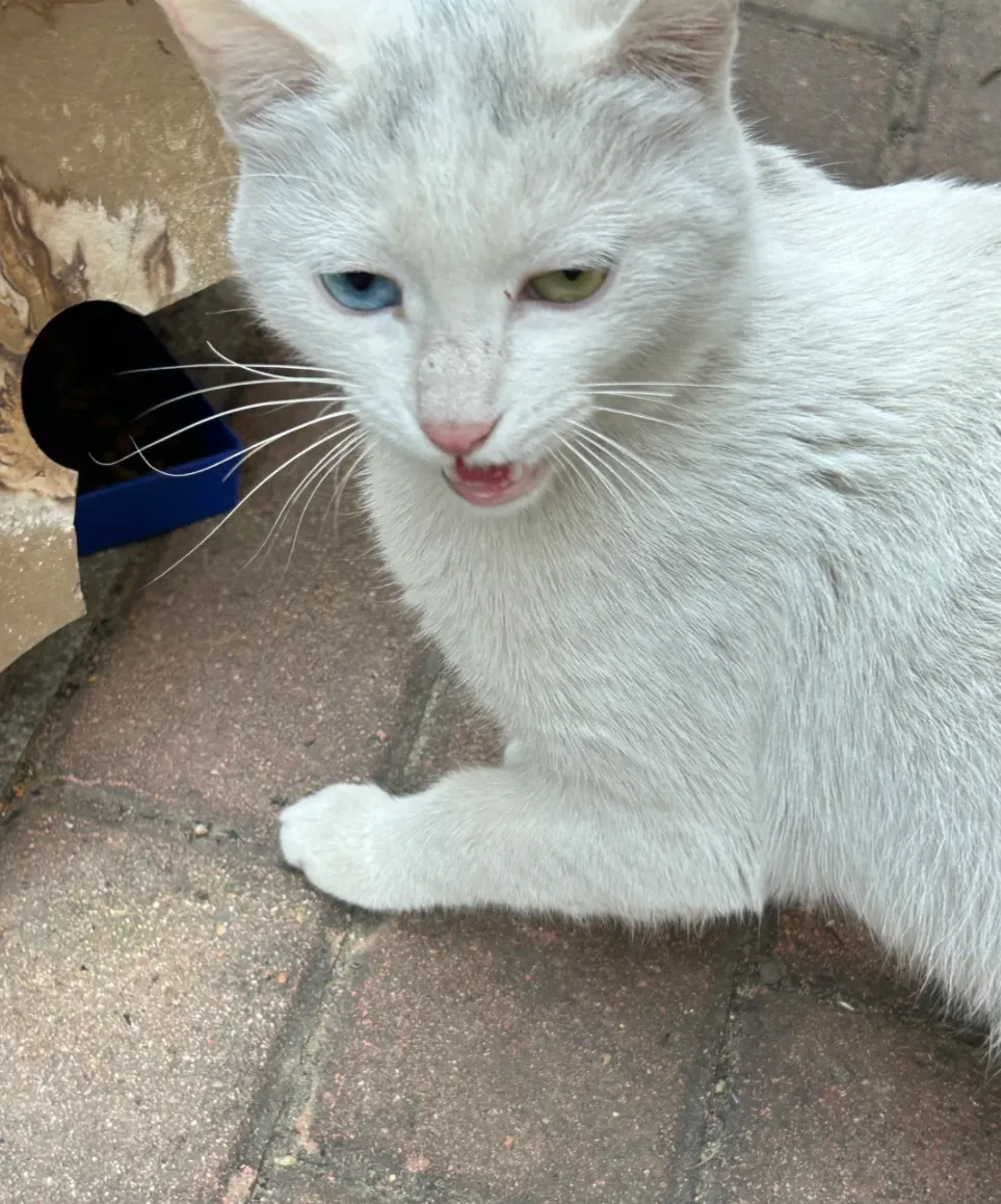 宠物信息:小区院里有几只流浪猫,这只白色异瞳小母猫夹在他们中间生存简直是地狱难度。白色异瞳在猫圈里本来就不受待见,还是个小母猫,每次见它都饿的狂叫,又瘦又脏,人家都说猫爱干净,如果看起来很脏是因为它过的不太好。其他小猫都成群结队的生存,只有它总是落单。 过几天郑州降温,好像还有雪,希望能在降温前给它找个家。