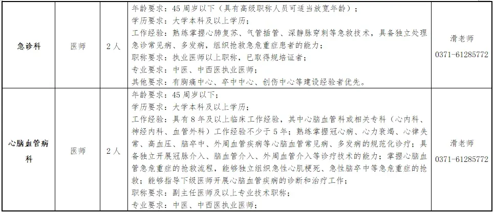 附件:《郑州市管城中医院公开招聘临床实用型人才岗位一览表》