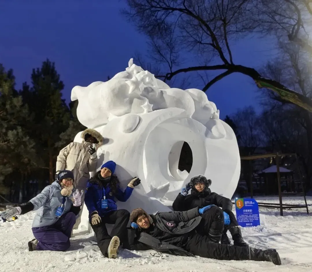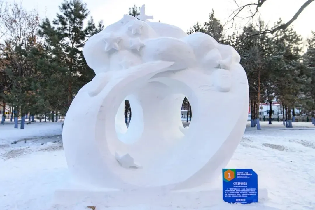 近日,由教育部高等学校工业设计专业教学指导分委员会主办、哈尔滨工程大学承办的2026第十八届国际大学生雪雕大赛在哈尔滨举办。在郑州大学美术学院雕塑系主任牛雯雯的指导下,该学院研究生董浩宇、王宇、赵一哲、王川合作的雪雕作品《华夏脊梁》荣获特等奖。