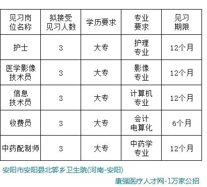 见习岗位招聘公告—安阳县北郭乡卫生院