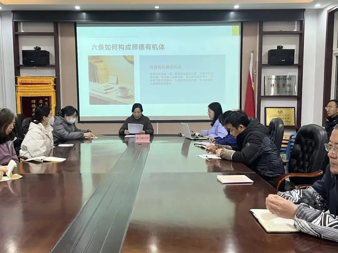 山以高为峻,海以深为广,而师以德为尊。师德,是教师的立身之本,它如同春雨般润物细无声,滋养着每一颗求知的心灵;师风,则是教师风范的集中体现,它蕴含在教师的言传身教之中,体现在教师的日常行为之中。为进一步规范教师职业行为、明确师德底线,充分展现教师队伍崇高的师德风貌,安阳市北门西小学于2026年1月12日开展了师德专题培训活动,本次培训由校长党海珍主持。