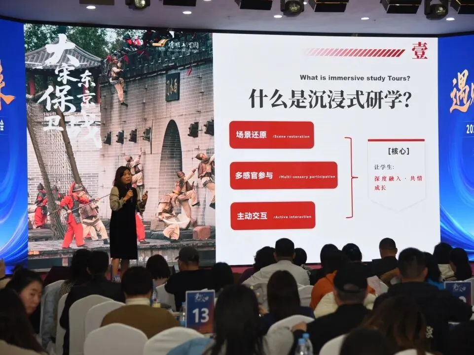 年会期间,我公司总经理孙鸿雁女士作为特邀分享嘉宾,以“沉浸共情成长,让文化活起来——解锁沉浸式研学的深度魅力”为主题,与全国同行进行了深入交流。