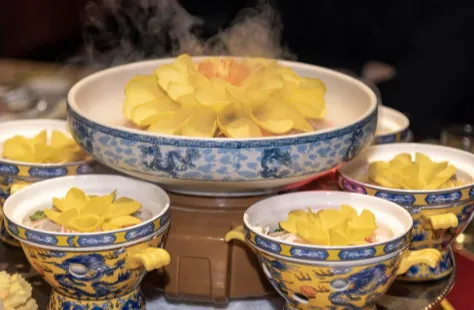 夜里回老城,找家安静的小馆,水席挑几道代表,牡丹燕菜摆在正中,汤清得照人。