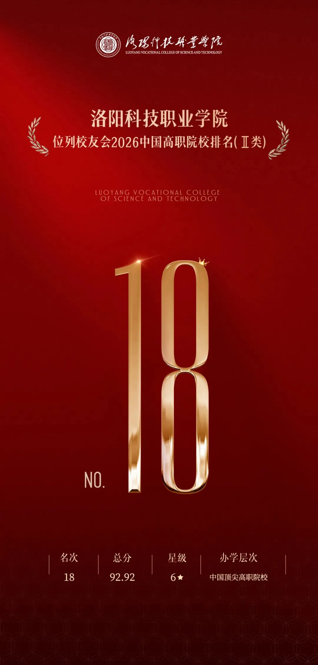 此次排名,是对洛阳科技职业学院学科建设、师资队伍、教学质量、科研创新等方面综合实力的肯定,为学校未来的发展注入了强大的动力。下一步,学校将坚持社会主义办学方向,以高质量党建引领学校事业高质量发展,深化人才培养模式变革,加强职教改革新模式探索,不断提升人才培养质量和水平,积极探索高职教育发展的新模式和新路径,为建设具有中国特色、世界水平的现代职业教育作出新的更大贡献。