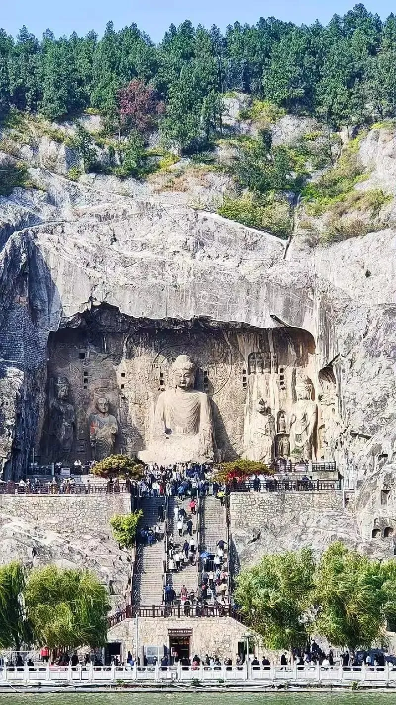 伊水滔滔,一碧万顷。龙门石窟位于伊水两岸的香山与龙门山上,“二山夹一河”构成了龙门石窟景区。屹立在伊水河畔的千年佛国,见证了北魏的雄浑、盛唐的辉煌,每一尊雕像都是历史的印记,残损的佛像,斑驳的壁,镌刻着岁月的沧桑。