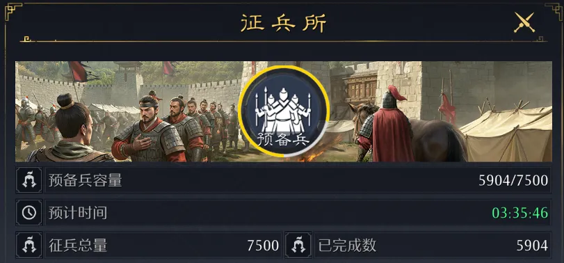 还要注意个人领地中的各种建筑:征兵所要提前拉满队列,卡在开战前运兵!推荐建满威胜大营,提高城镇预备兵上限;剩下的槽位可以选择善造工坊,来增加粮食产量。