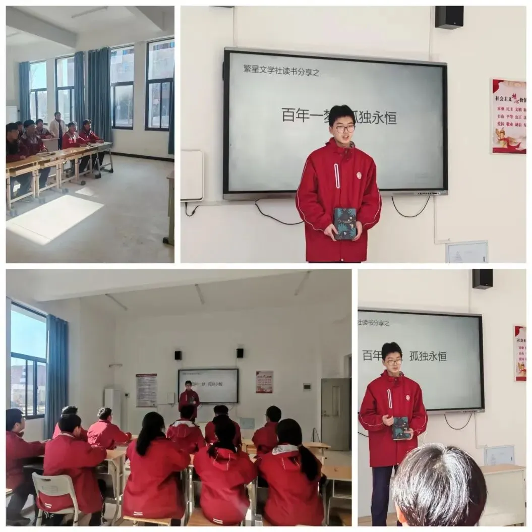 本月,繁星文学社围绕阅读与创作开展了两项活动,丰富了社员们的校园文化生活:一是读书分享,希望可以提升大家的文学鉴赏与表达能力。本期活动由社长尚政霖为大家介绍哥伦比亚作家加西亚·马尔克斯及其代表作《百年孤独》,他从创作背景、内容概括到自己的阅读感受与大家做了分享,并提出了关于“你最喜欢的人物形象”的讨论,大家互动积极。二是编辑整理并印制了社刊《繁星集》,希望借此留存社团成长印记,呈现社团文学成果,搭建社员创作展示平台。