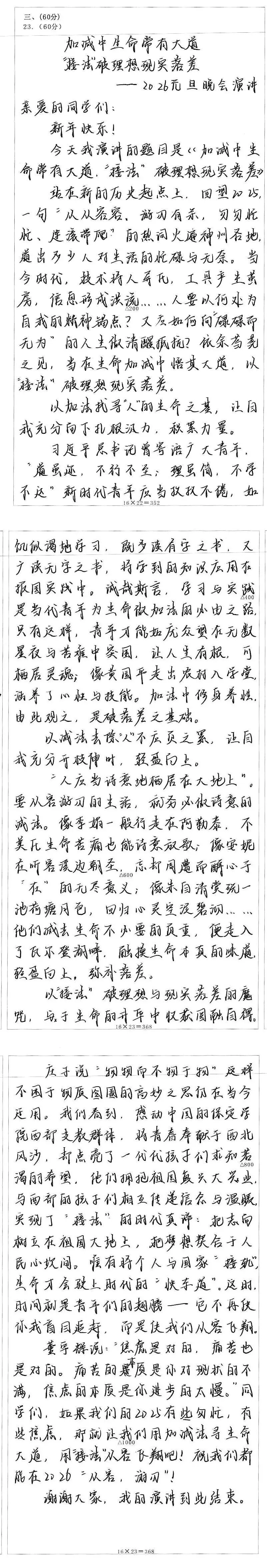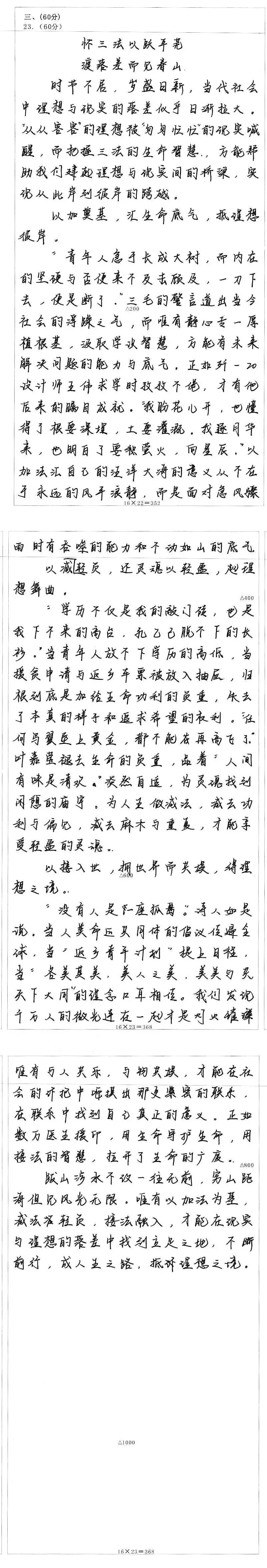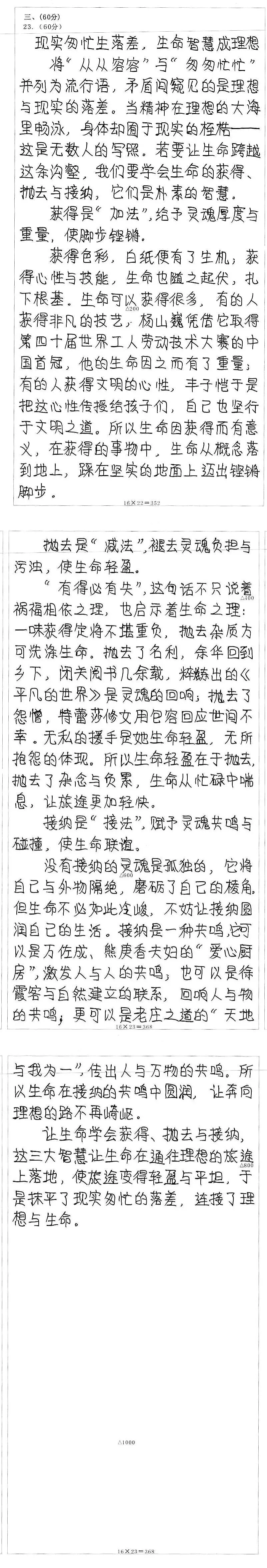 要求:选准角度,确定立意,明确文体,自拟标题;不要套作,不得抄袭;不得泄露个人信息;不少于800字。
