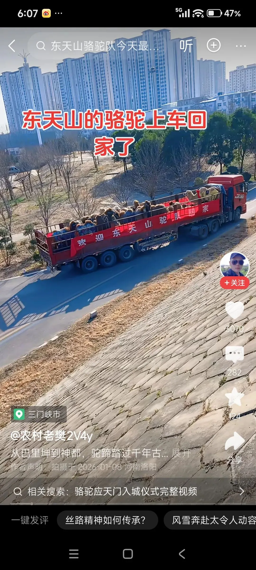 却有狭隘的地域黑者扬言要杀骆驼,迫使东天山来的驼队副队长程巍(大威)在视频里发布致歉声明,第一点就强调:西安是丝绸之路的起点……