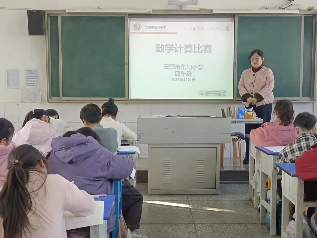 计算能力是数学学习的基石,更是培养专注力与逻辑思维的重要抓手,为丰富校园学科活动,助力学生全面发展。1月9日下午,安阳市东门小学的校园里洋溢着紧张又热烈的氛围,一至六年级数学计算比赛如期举行。这场以“夯实运算根基,激发数学兴趣”为宗旨的赛事,为全校学生搭建了展现计算才华的舞台,上演了一场精彩的“数字较量”。