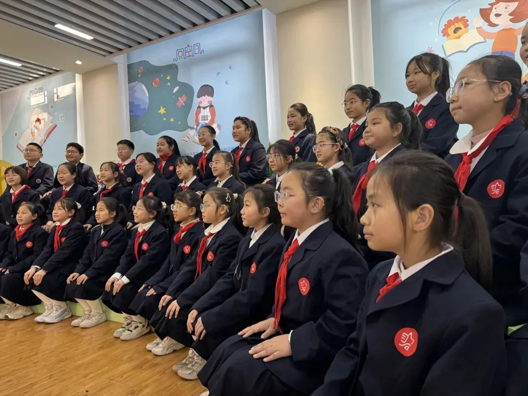 专家考察团和市区领导走进阅空间,聆听学生合唱表演,孩子们身着统一礼服,稚嫩的歌声整齐又响亮。悠扬的琴声与童声交织,彩色的卡通树装饰环绕在侧,整个空间里满是童真的旋律和欢快的氛围。