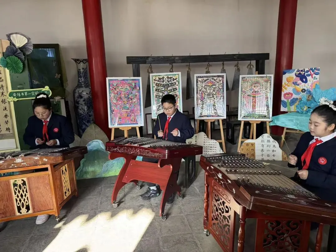 专家团沉浸式体验我校自然与艺术融合的特色教育。树枝、树叶与毛线编织出自然而然的灵动;童真画笔在原创绘本里勾勒乡土情怀与传统底蕴;青铜器版画的威严与骏马的矫健跨越时空相遇;宋锦手工品尽显古典韵味与东方美学……耳畔伴着悠扬音乐,徜徉在这个音画融合的美好空间,专家团对我校将安阳本土文化融入美育的实践连连称赞,并为后续教学发展建言献策。