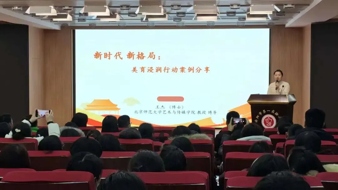 美育是滋养学生心灵、提升综合素养的重要途径。最后,北京师范大学艺术与传媒学院舞蹈系舞蹈教育教研室主任兼教授王杰,带来一场关于学校美育浸润行动的专题报告,她以国家美育相关政策文件为切入点,系统拆解学校美育浸润行动的目标任务与八大举措,清晰勾勒出教学改革的核心方向,同时着重强调美育应是面向全体学生的常态化浸润,唯有将美育时间还给学生,才能让审美素养融入成长底色。从政策解读到案例分享,从理念更新到方法指导,王教授的讲解层层深入、内容详实,让在场教师不仅明晰了美育教学改革的实践路径,更对“以美育人、以文化人”的教育内涵形成了更为深刻的认知。
