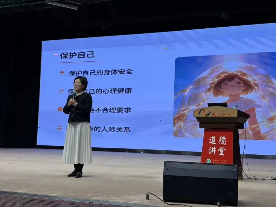 谈及青春期的自我关爱与保护,王老师引入了马斯洛需求层次理论,强调 “接纳自我、勇敢表达” 的重要性。她特别叮嘱女生们: