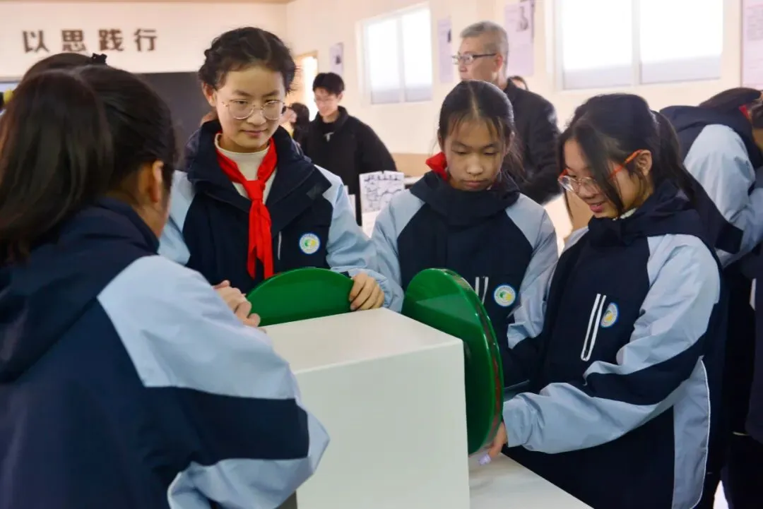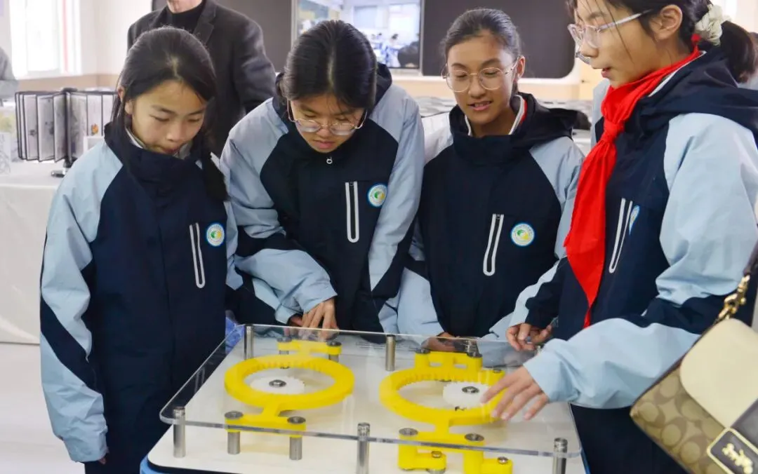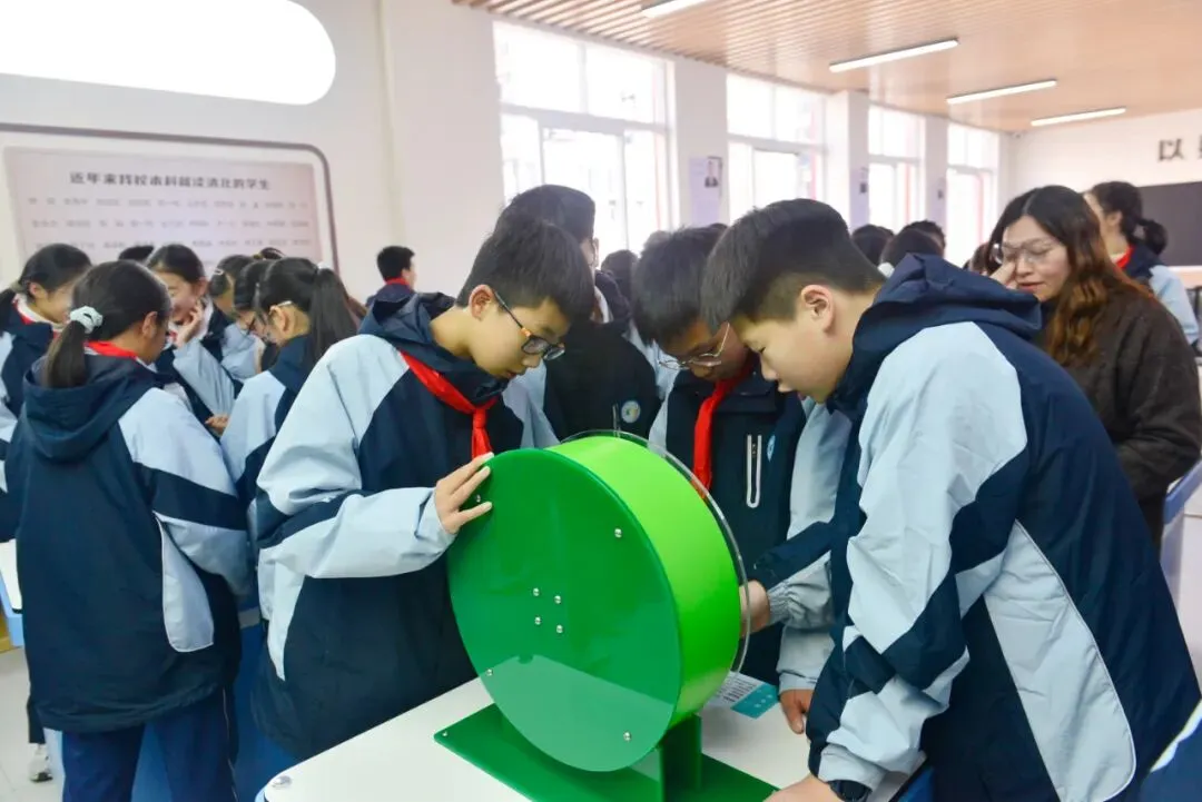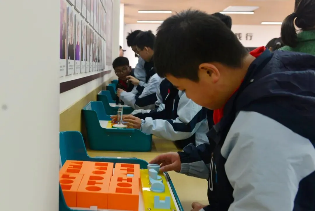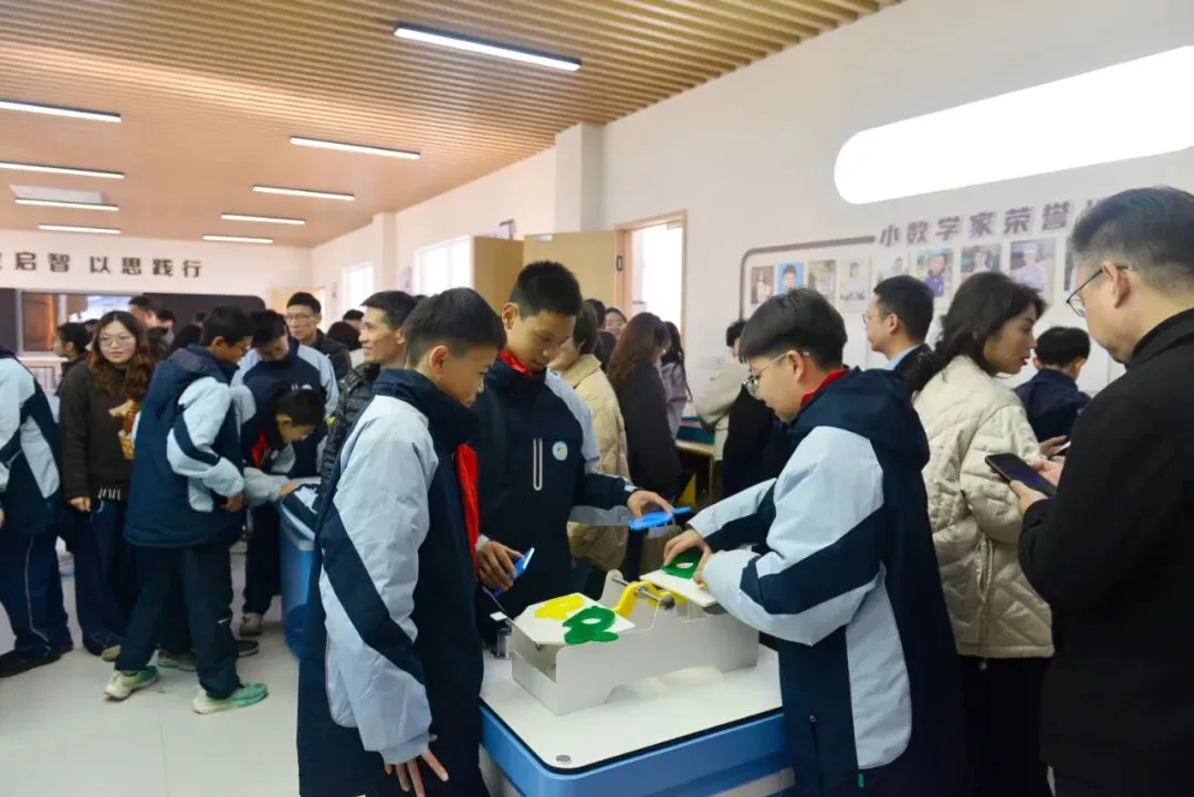 仪式结束后,嘉宾与师生代表开启了数学馆首览之旅。据介绍,这座数学馆主要分设开展数学实验或知识普及的教学活动区和融合数学思维、动手创新的教具展示区,旨在打破数学学习的传统边界,建立玩数学、学数学的文化空间。学生们在现场展示中动手操作几何模型、探索数学理论互动实验装置,在沉浸式体验中感受数学与自然、生活、科技的深度融合。“原来抽象的数学知识可以这么直观,这么好玩,以后我一定要常来这里探索!”七(20)班的同学兴奋地分享着首览体验。