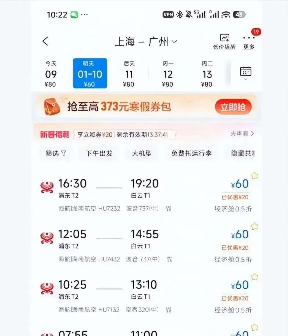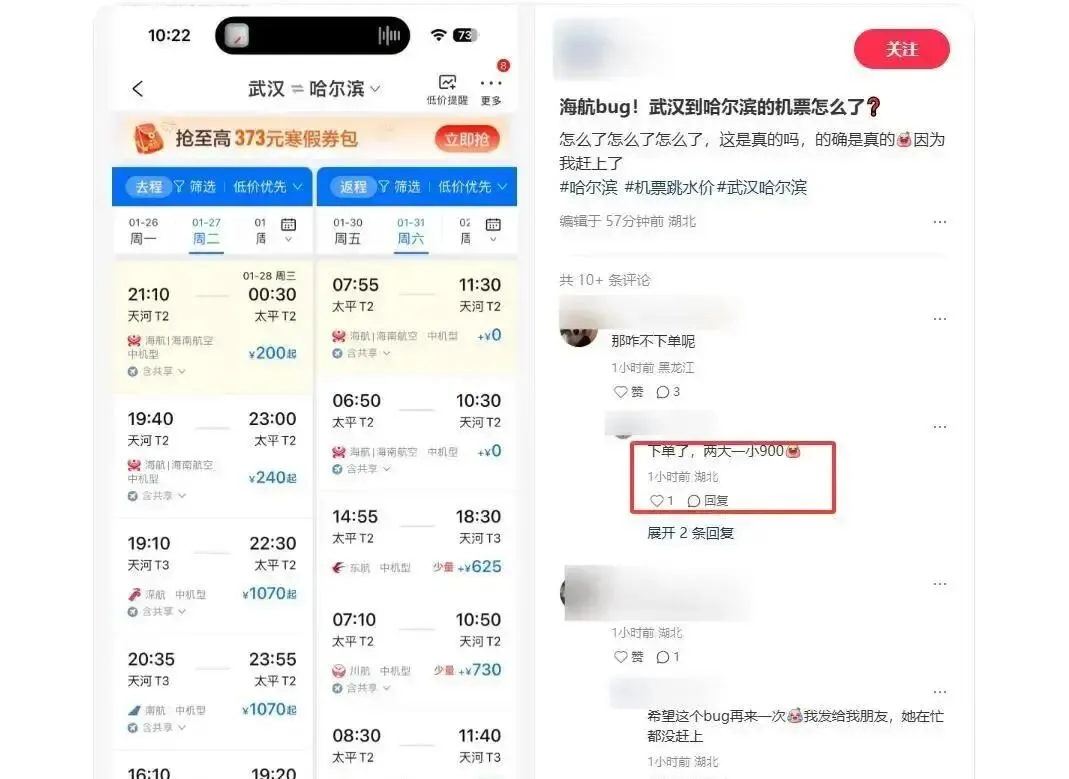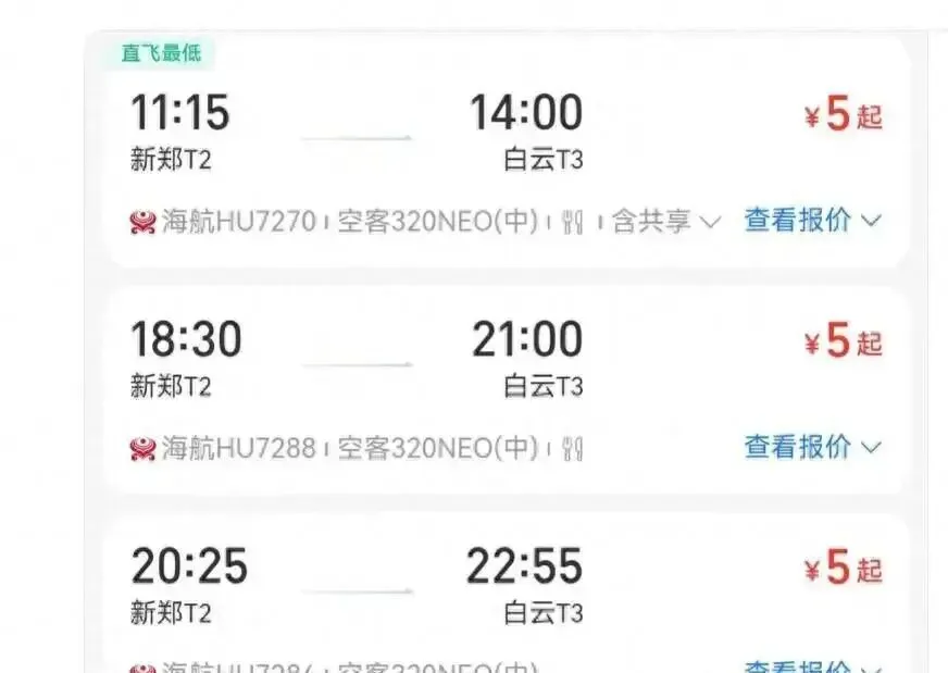 1月9号上午,全国网友集体炸锅。海航系统突然抽风,多条航线价格直接打骨折:郑州飞广州5元,武汉到哈尔滨两大一小才900块,广州飞北京130块,哈尔滨飞三亚360块还能免费改签。有人刷到这价格,手速快过外卖小哥,秒付钱,结果系统一卡,以为自己中了诈骗。