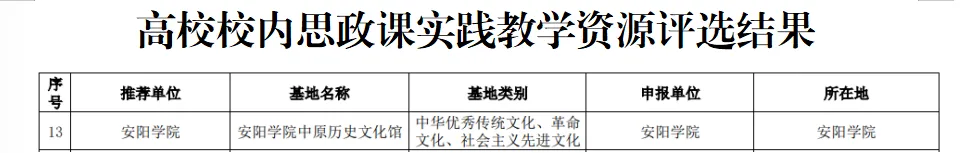 近日,中共河南省委宣传部、中共河南省委教育工委、河南省教育厅公布了关于优秀“大思政课”实践教学基地建设案例评选结果。安阳学院学务部牵头申报的学校中原历史文化馆“大思政课”实践教学基地成功入选河南省高校校内思政课实践教学资源名单,成为河南省高校优秀“大思政课”实践教学基地,标志着学校“大思政课”建设工作取得了又一重要阶段性成果。