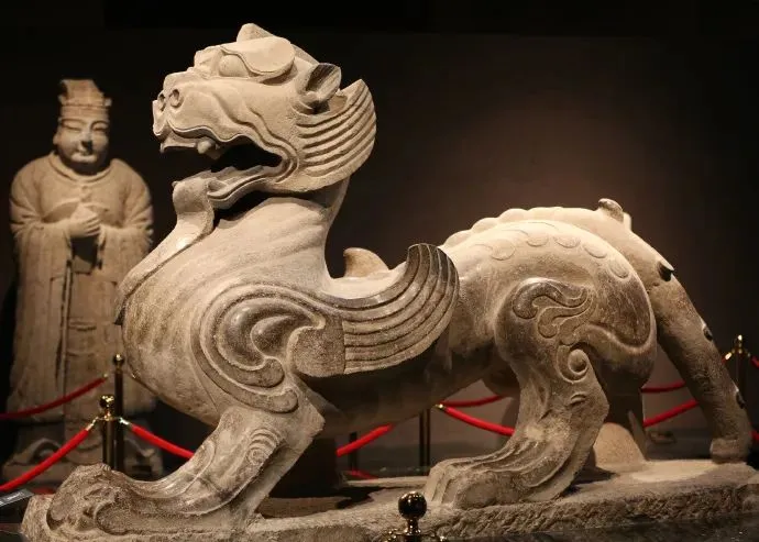 在洛阳博物馆,有五大镇馆之宝:北魏的微笑、东汉石辟邪、金丝楠木塔、曹魏白玉杯和唐三彩黑釉马。