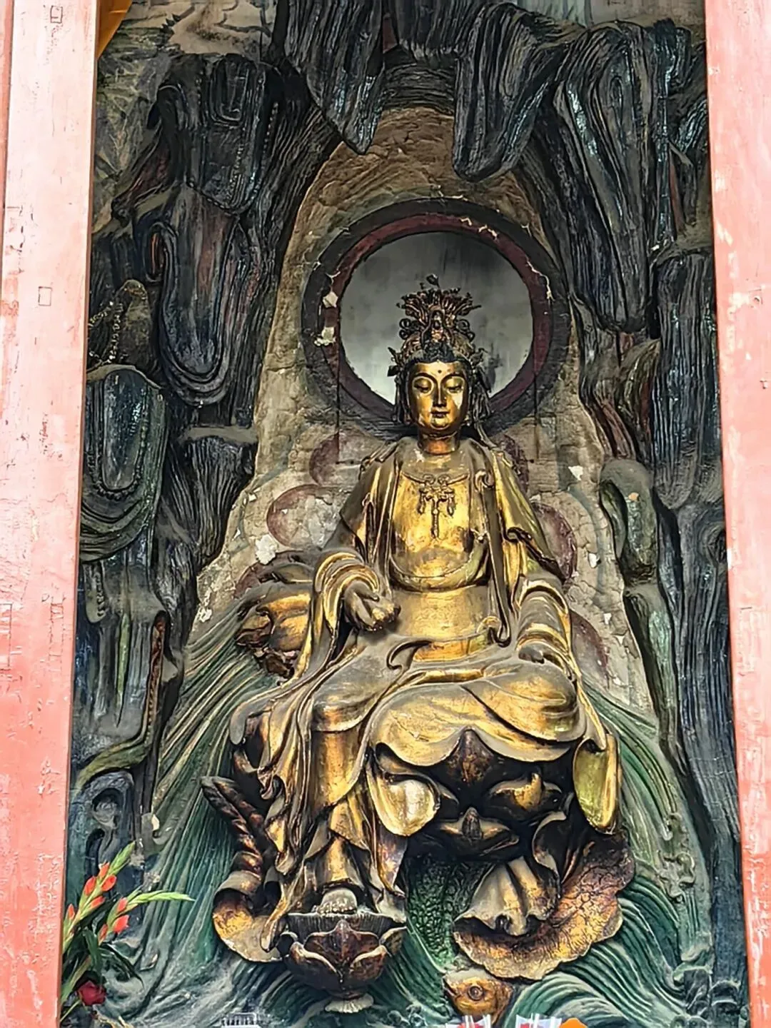 在阳光的照耀下,这些佛像更显得金光闪闪,熠熠生辉。
