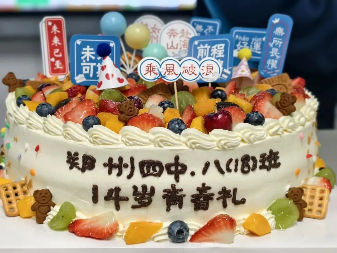 各班级在教室里开展了形式多样、各具特色的庆祝活动。有的班级通过播放记录同学们从入学至今成长点滴的视频,引发阵阵感动与欢笑;有的班级在班主任和家长的共同见证下,举行温馨的集体生日会,分享蛋糕、互赠祝福。才艺展示、感恩书信朗读、梦想演讲等环节,充分展现了同学们的活力、才华与对师长、伙伴的真挚情谊。